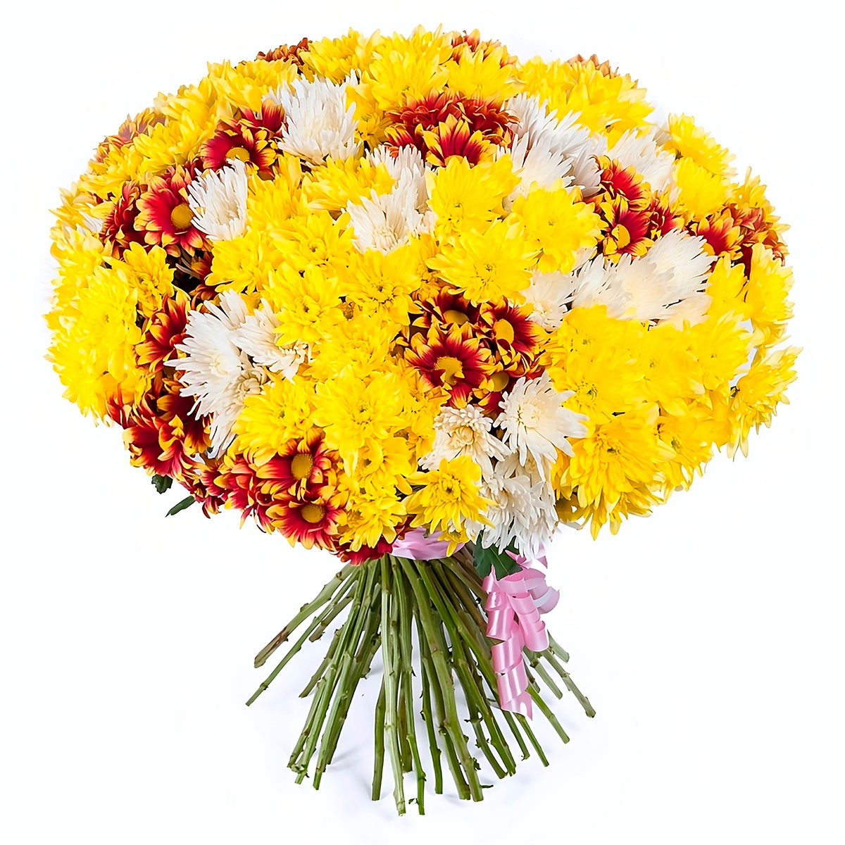 Хризантема кустовая микс 3 с доставкой по г Уфа: вы можете заказать букет в цветочном гипермаркете «Флормания» по цене за 270 руб.