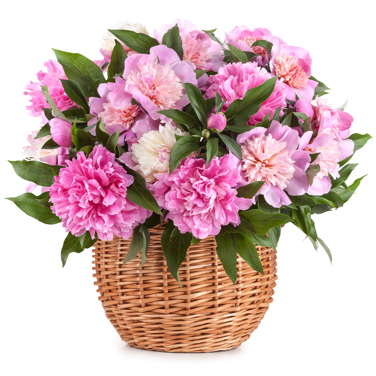 Пион розовый. Упаковка (Корзина, оазис, ящик).