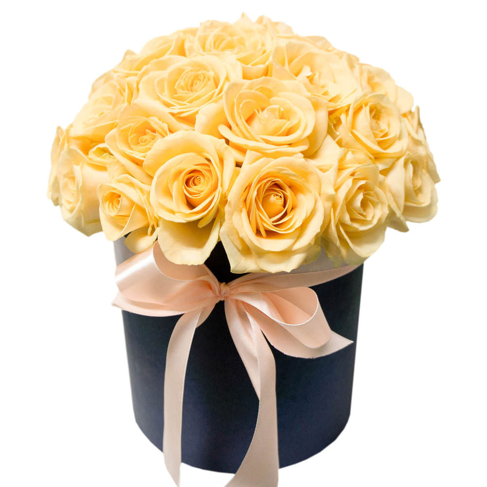 Цветы в коробке «Кремовые розы» с доставкой по г Уфа: вы можете заказать букет в цветочном интернет-магазине «Флормания» по цене от 3190 руб.