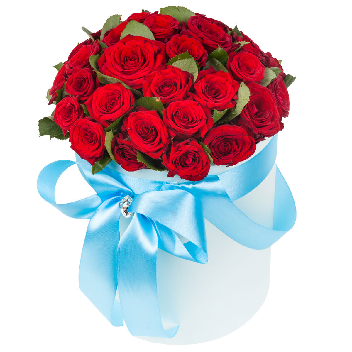 Роза одноголовая красная. Упаковка (шляпная коробка, квадратный бокс, коробка сердце, оазис)