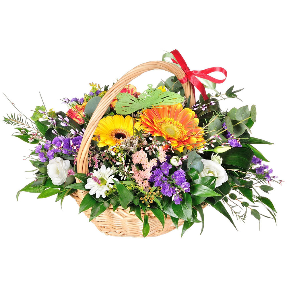 Цветы в корзинке «Радуга» с доставкой по г Уфа: вы можете купить букет в цветочном интернет-магазине «Флормания» по цене от 3490 руб.