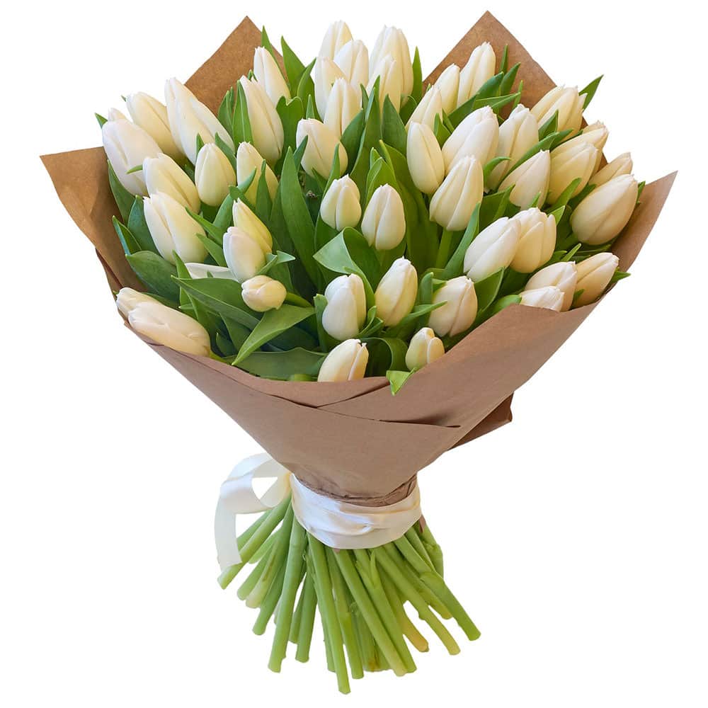 Тюльпаны белые с доставкой по г Уфа: вы можете купить букет в гипермаркете цветов «Флормания» по цене за 170 руб.